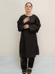 Loose fit kurta adorned with black lace details paired with wide leg pants/sharara
